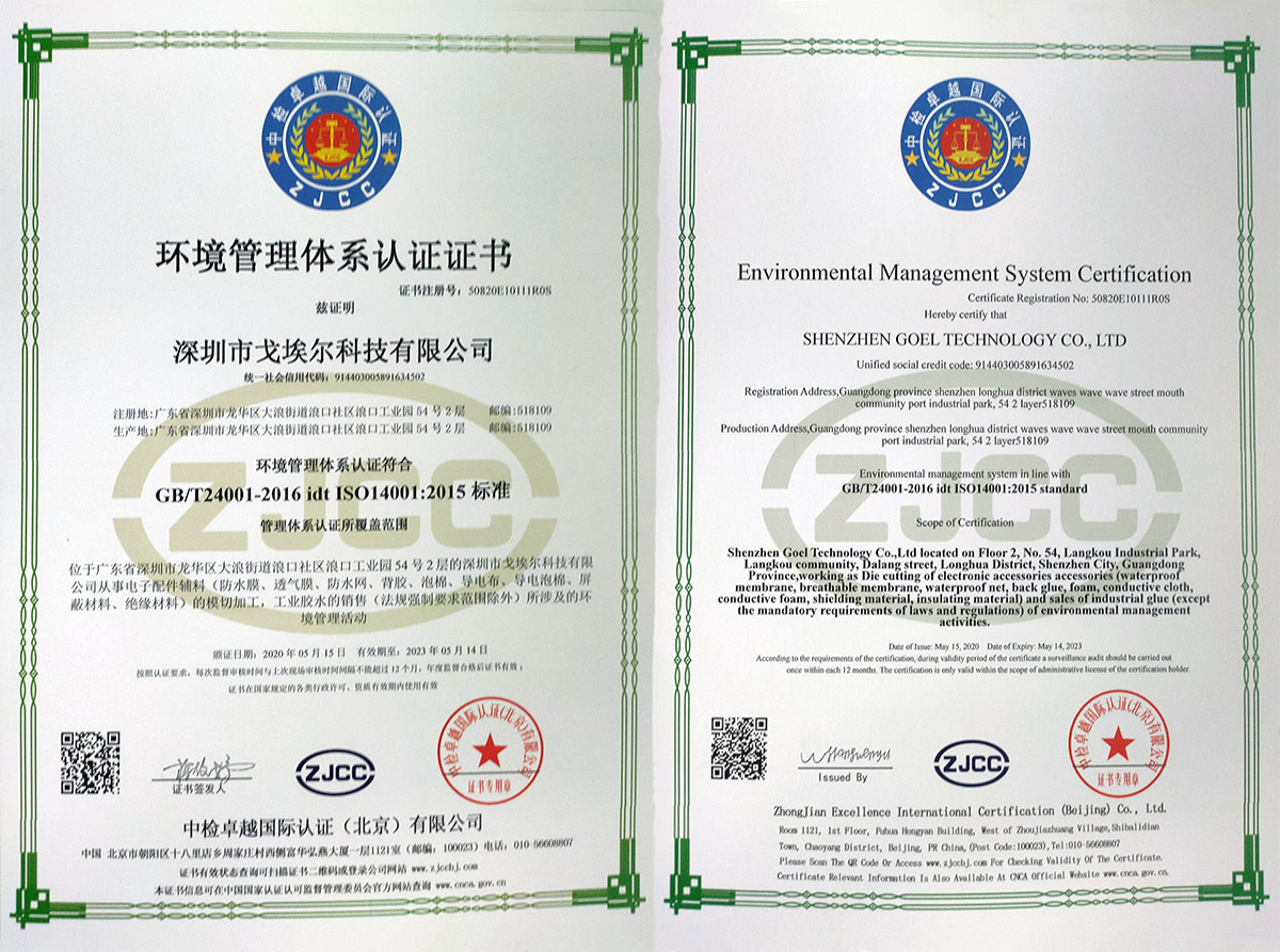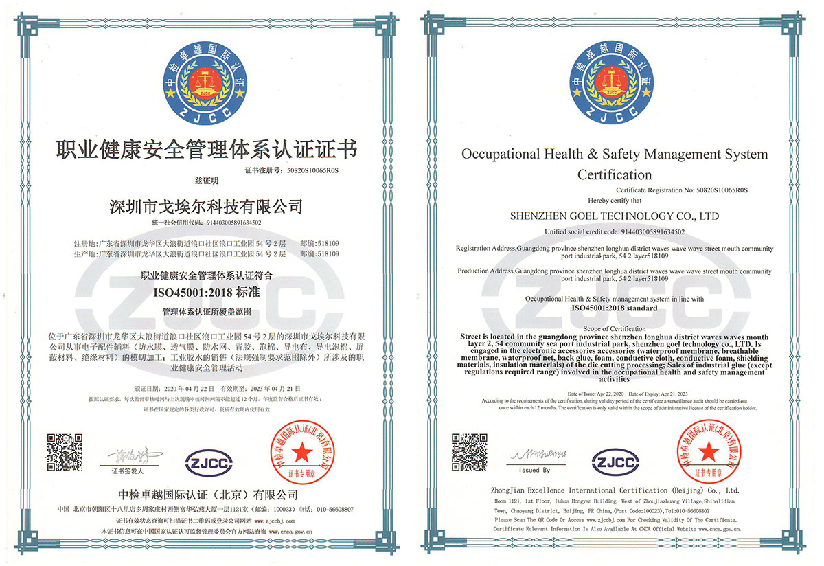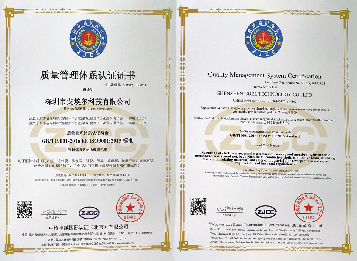 深圳市戈埃爾科技有限公司成立于2012年1月,坐落于中國經濟改革開放的前沿——粵港澳大灣區(qū)——深圳龍華新區(qū),占地面積達2000平米.是一家專注于高功能應用材料解決方案之防塵透氣、防水透聲、電磁屏蔽、 高功能膠粘和模切加工的公司,產品用于航天、航空、通訊、汽車、醫(yī)療、食品、消費類電子等高科技領域,與國內外企業(yè)和研發(fā)機構建立了長期友好的合作關系。 經過多年的發(fā)展,公司已成為國內防水透氣和防水透聲行業(yè)具有競爭優(yōu)勢和品牌影響力的供應商。