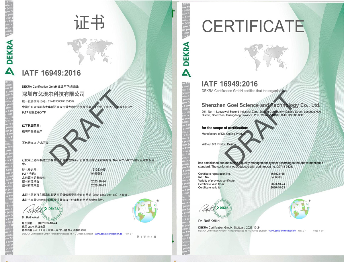 “專心、專注”是公司一直秉承的核心經營理念,公司現(xiàn)有一批本行業(yè)從業(yè)多年的技術隊伍和管理骨干,擁有多臺模切機及系列沖壓等生產設備,同時也構建了一系列可靠性檢驗和試驗設備。公司成立伊始,便嚴格按現(xiàn)代企業(yè)制度進行建設和管理,以靈活的市場運作機制不斷為客戶提供產品和服務。隨著電子工業(yè)的飛速發(fā)展,為達到向客戶提供更好的產品和服務,公司先后通過ISO9001質量管理體系和ISO14001環(huán)境管理體系認證,同時還榮獲2022年深圳市“專精特新”企業(yè)稱號和“創(chuàng)新型中小企業(yè)”稱號。在2023年10月公司獲得IATF16949(ISO/TS16949)——汽車行業(yè)管理體系認證。 及時周到的服務贏得了國內外客戶的高度信賴和支持.