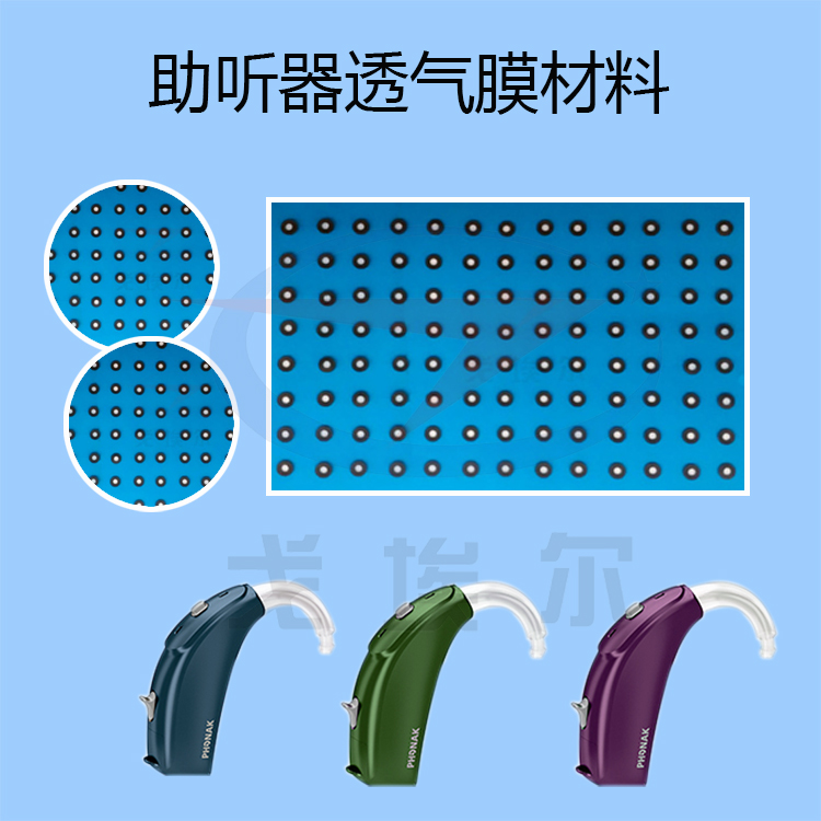 助聽器防水透氣膜的材料一般情況下是聚四氟乙烯(e-PTFE),ePTFE是一種新型的防水透氣材料,防水透氣膜具備三大功能:防水:0.1-1.0微米的微孔,孔徑小于水珠10000倍,使水分無法通過,有效保護敏感類部件,避免液體侵蝕,提高產品使用壽命。
