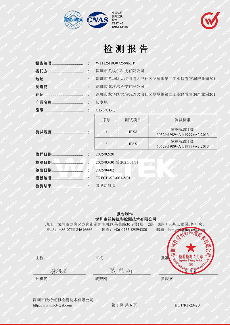 防水透氣膜和IPX7級(jí)壓力平衡濾膜